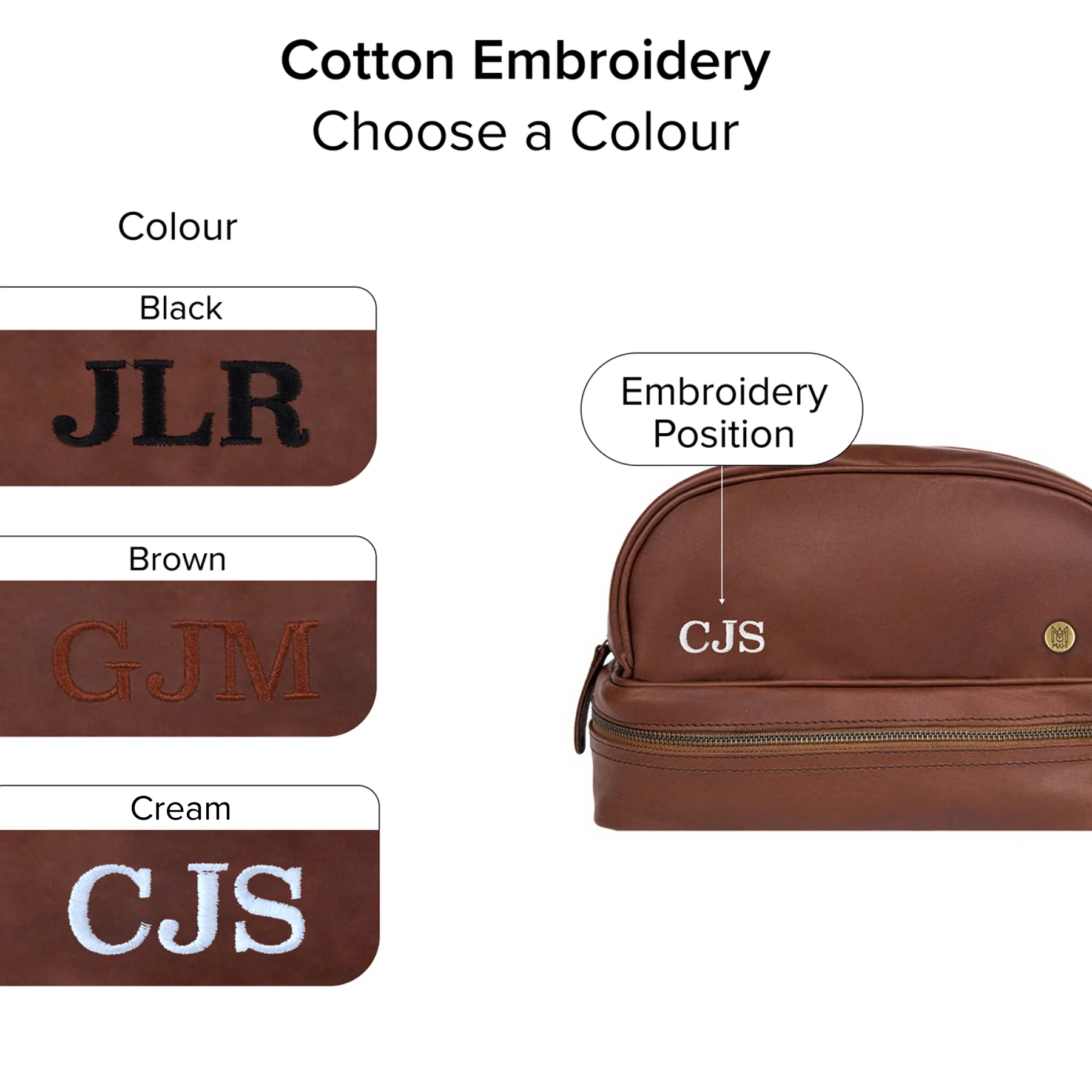 *** INTERNAL EMBROIDERY: Internal embroidery is only available on the wash bag (max: 50 characters). Please specify your choice of internal embroidery in the order notes. ***