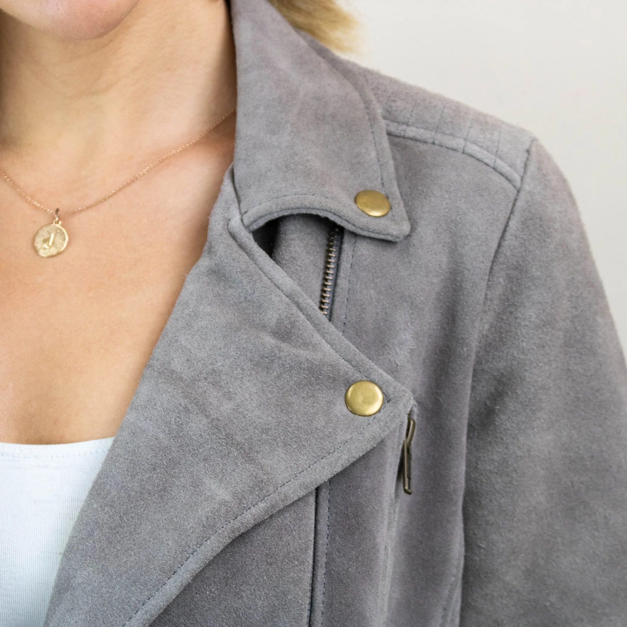 Introducing our brand new women's grey suede biker jacket. This stunning jacket is handmade in our workshop using soft suede with a cotton lining, YKK zippers and brass hardware. For our first women's jacket, we've chosen a classic design that is sure to stand the test of time.