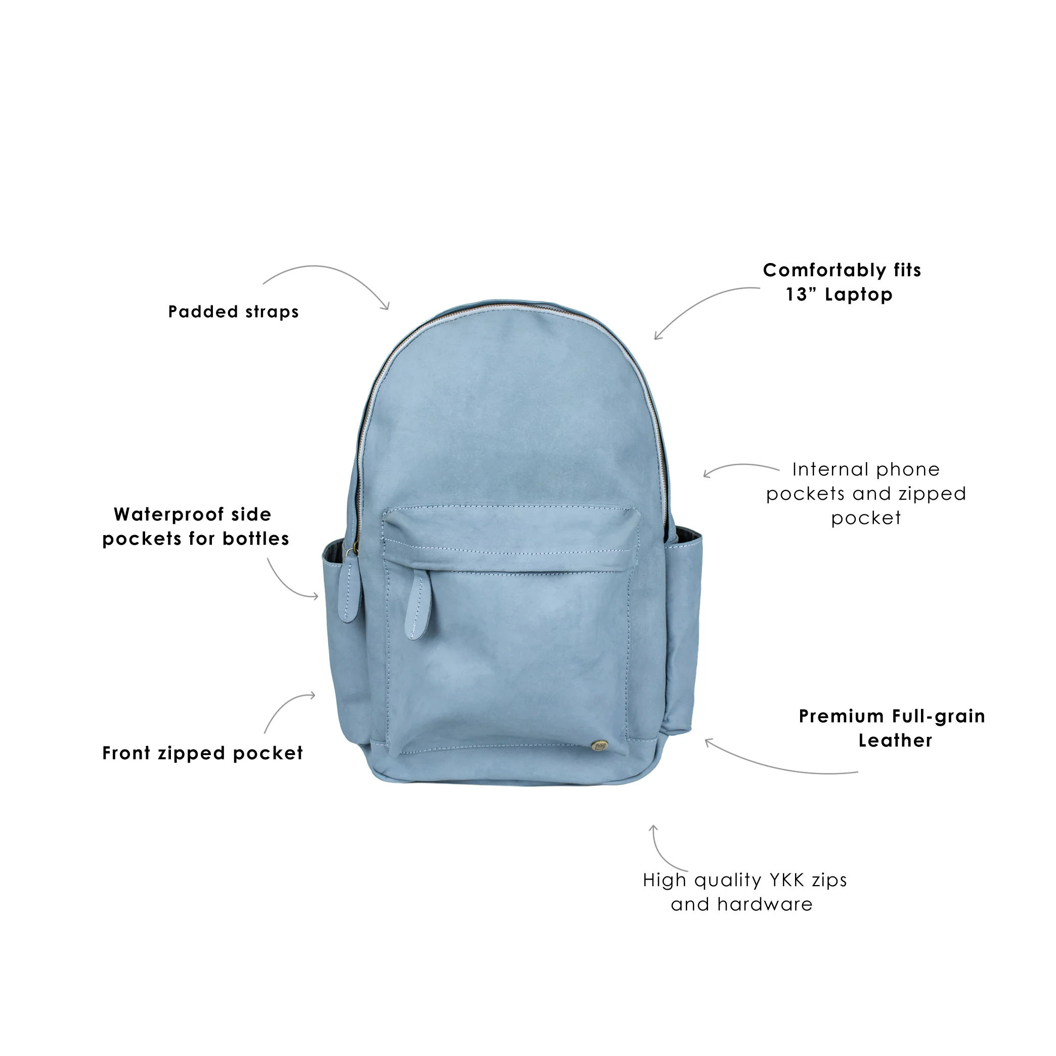 - Hardware: Brass fittings and robust YKK zippers.
